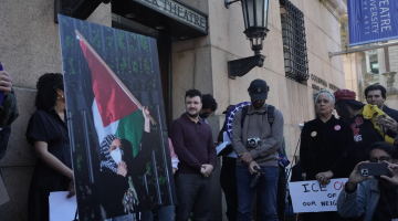 احتجاج داعم لقائد الاحتجاجات بجامعة كولومبيا “محمود خليل”