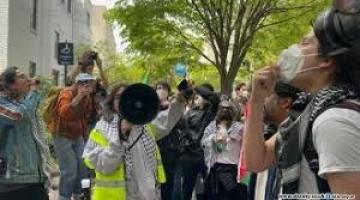 في أمريكا احتجاج طلابي تنديدًا بتعاون جامعة جورجتاون مع شركات إسرائيلية