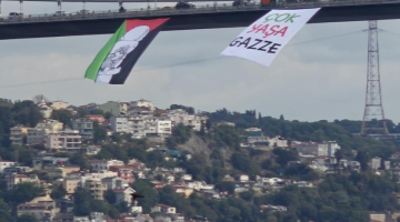رفع علم فلسطين ولافتة تضامنية على أشهر جسور إسطنبول