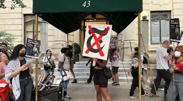 كيف يمكنك النوم! محتجون ضد التزييف أمام منزل رئيس تحرير نيويورك تايمز