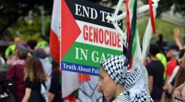 "لا قنبلة أخرى".. أنصار فلسطين يحاصرون مؤتمر الحزب الديمقراطي بشيكاغو