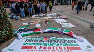 مسيرة احتجاجية في محطة قطار فولدا بألمانيا دعمًا لفلسطين