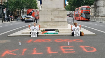 "أوقفوا تسليح إسرائيل".. ناشطات يرفعن علم فلسطين على نصب تذكاري في لندن