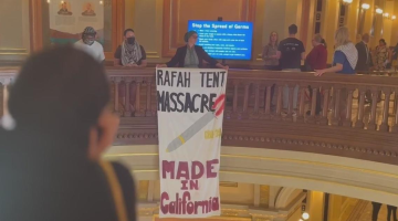 "راعي الإبادة" أنصار فلسطين يعطلون جلسة جمعية كاليفورنيا