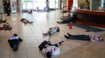 نشطاء لوس أنجلوس يحتجون بـ”موت رمزي” ضد مجازر الاحتلال