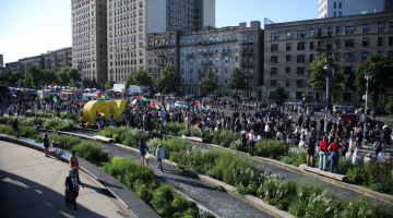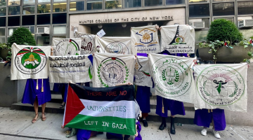 خريجو جامعة نيويورك يحملون شعارات تضامنية مع غزة
