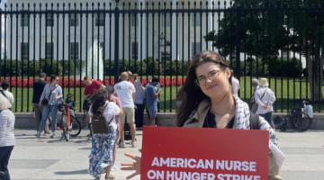 ممرضة تبدأ إضرابًا عن الطعام خارج البيت الأبيض رفضًا للإبادة