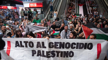 نشطاء يعتصمون في محطة قطار بمدريد للمطالبة بقطّع العلاقات مع "إسرائيل"